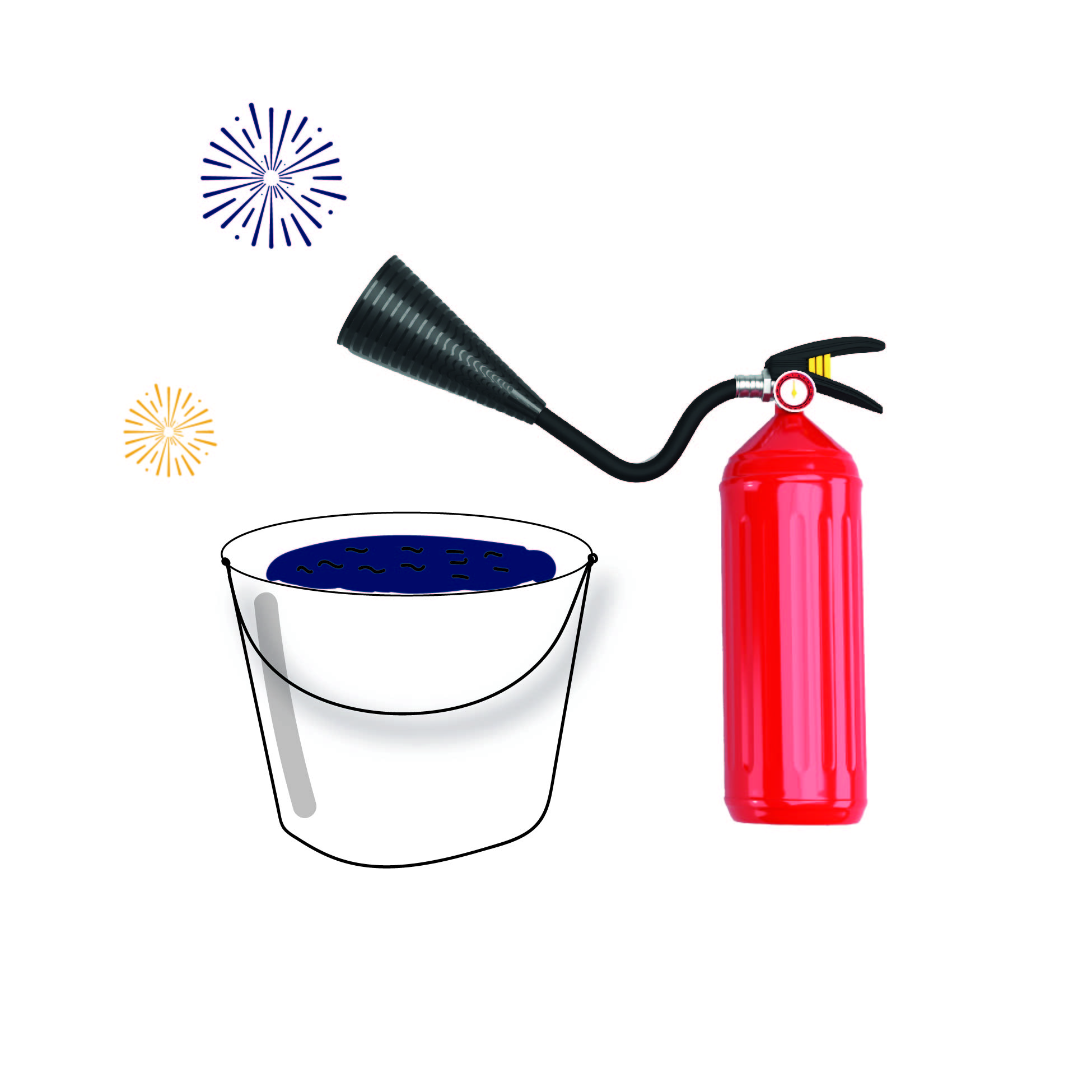 Wenn du viel Feuerwerk zündest: Denk' daran, einen Eimer Wasser oder einen Feuerlöscher bereit zu halten. So bist du in allen Situationen sicher.