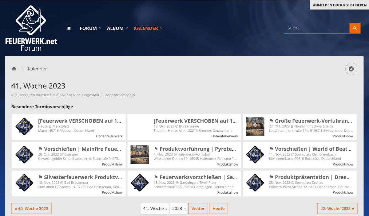 FEUERWERK.net beheimatet den umfassendsten Kalender mit Feuerwerksterminen. Hier sind auch kleinere Feuerwerke gelistet und nach Registrierung können auch selbst Termine eingetragen werden.